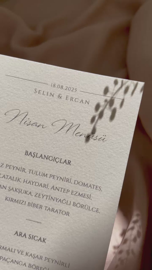 Carte de menu minimaliste Je place la carte, finition feuille d'or, papier aquarelle
