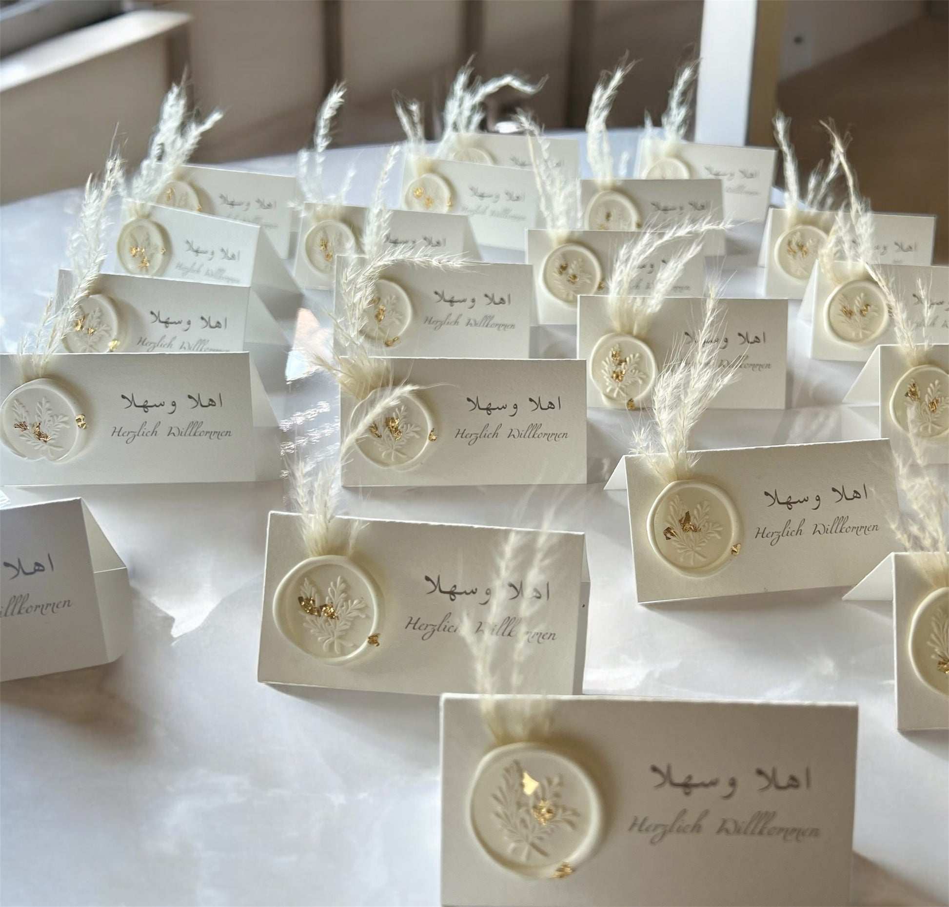 Marque-places papier fait main DIN A6 I plan de table, feuille d'or