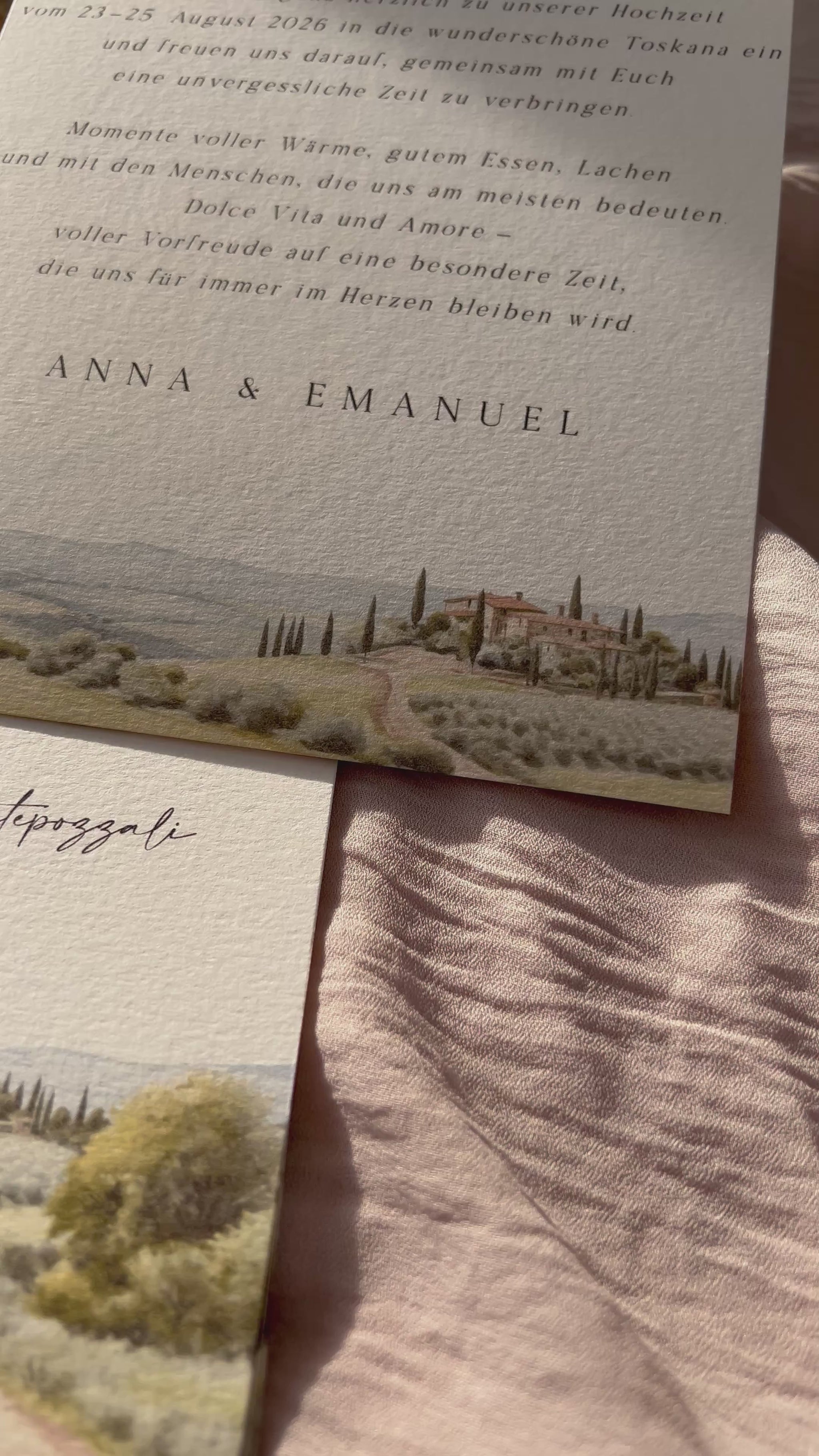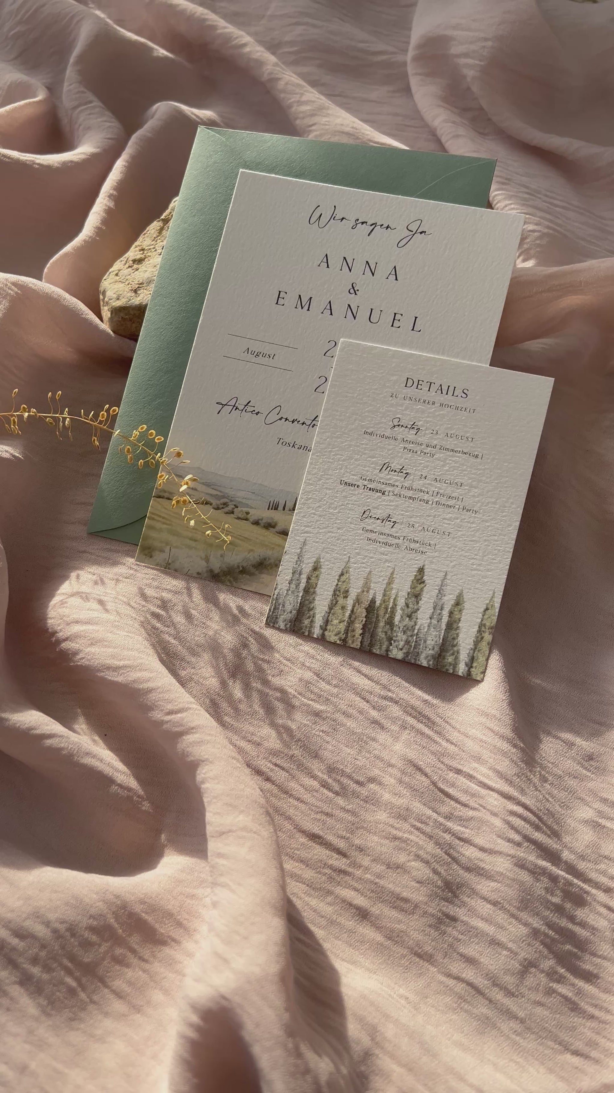 Auf Wunsch ist die Karte auch als Set erhältlich – kombiniert mit einer kleineren Detailkarte, die sich perfekt für zusätzliche Informationen wie Ablauf, Adresse oder Geschenkwünsche eignet.